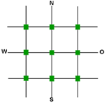 Ein in Zwischenhimmelsrichtung verlaufendes Gitter wurde als Diagonalnetz